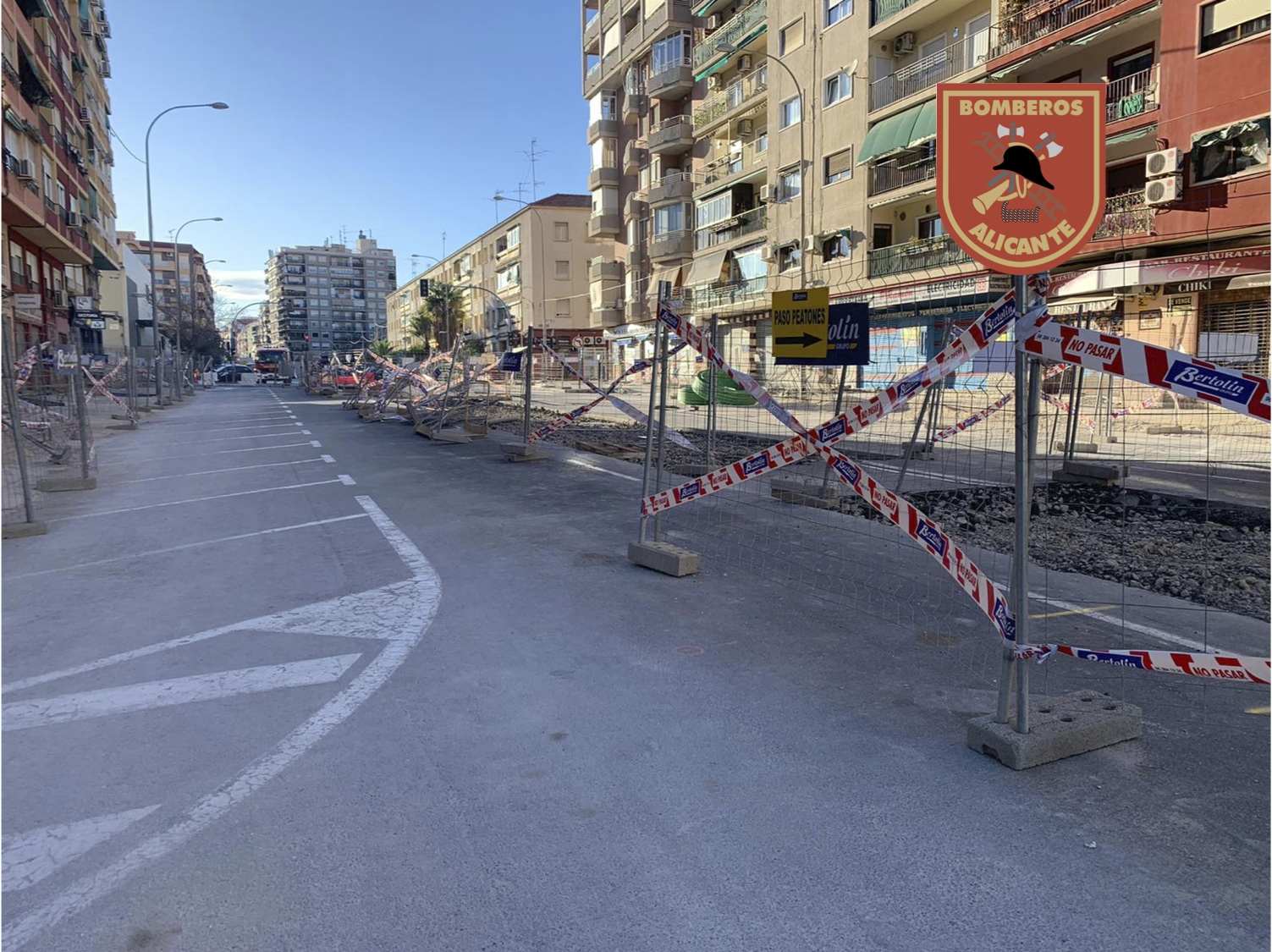 Asimismo los bomberos han informado que durante la mañana se ha actuado en varias zonas de obras por caída del vallado y placas metálicas, como la de la avenida de Padre Espla, y también se ha asegurado parte de un muro caído y el cerramiento en la Gran Vía.