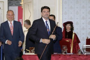 El popular Luis Barcala ha sido investido hoy nuevo alcalde de Alicante para el mandato 2019-23 con el respaldo de los nueve ediles de su propia formación y de los cinco de Ciudadanos (Cs), tras el pacto de gobierno firmado entre las dos fuerzas ayer. Dicho acuerdo político alcanza también al gobierno de la Diputación Provincial, cuya presidencia será para el ‘popular’ Carlos Mazón, número dos de Barcala, mientras que Cs ocupará una de sus dos vicepresidencias.