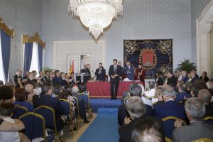 La sesión plenaria comenzó a las 10:17 horas en el salón azul del edificio histórico del Ayuntamiento con la asistencia de empresarios y representantes políticos y de la sociedad civil, como el conseller de Transparencia en funciones, Manuel Alcaraz; el delegado del Consell en Alicante, Esteban Vallejo; el rector de la UA, Manuel Palomar; su homólogo de la UMH, Juan José Ruiz; la presidenta del PPCV, Isabel Bonig; el expresidente de las Cortes, Julio de España; además de tres de los últimos alcaldes de la ciudad, el socialista Ángel Luna y los ‘populares’ Sonia Castedo y Miguel Valor, entre otros.