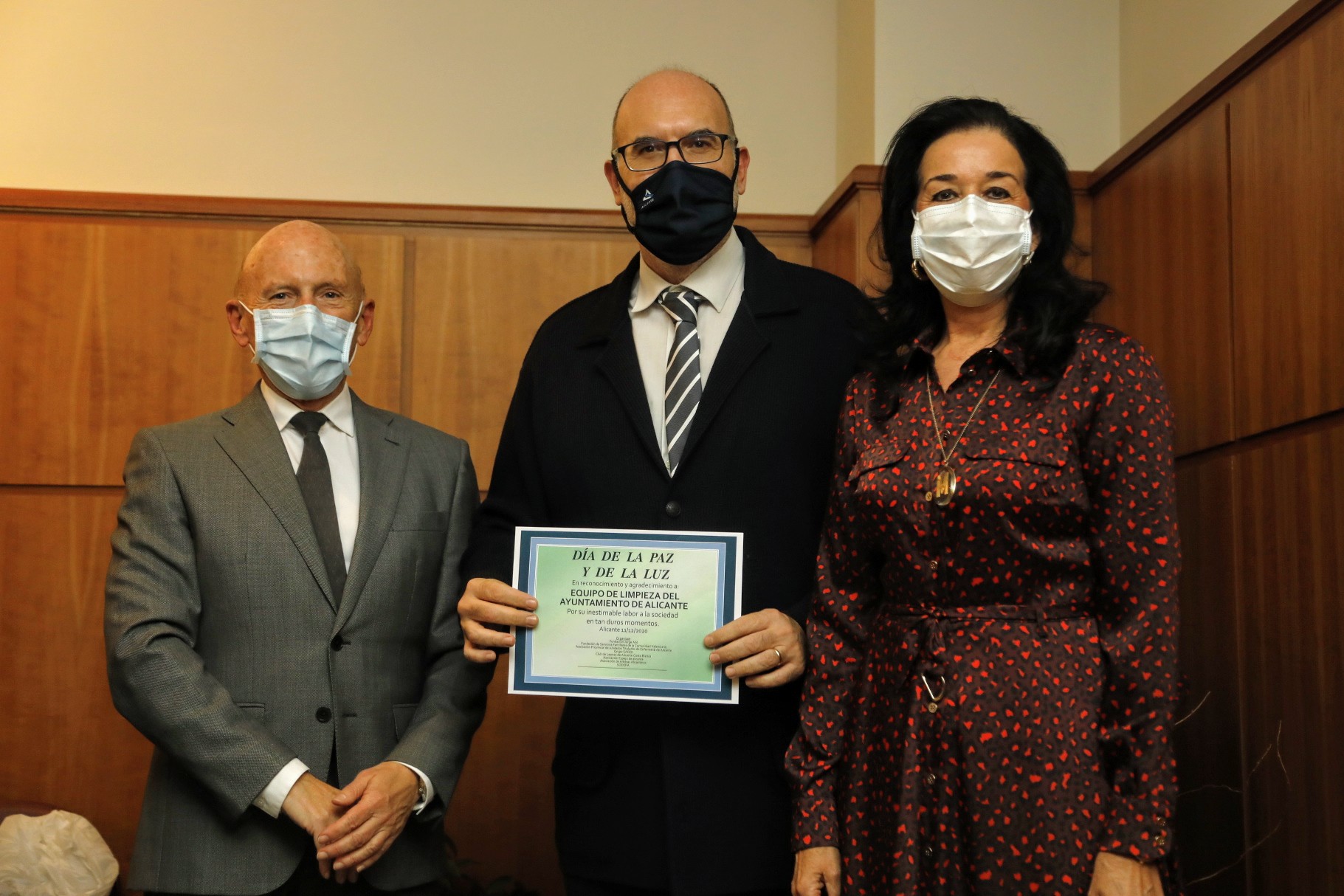 El alcalde de Alicante, Luis Barcala, ha recibido hoy el cargo de Padrino de Honor del «Día de la Paz y la Luz», que han organizado las fundaciones «Jorge Alió» y la de «Servicios Familiares de la Comunidad Valenciana». Además, se ha contado con la colaboración del Club de Leones Costa Blanca, la Asociación de Artistas Alicantinos, la Asociación Espejo de Alicante, la Asociación Provincial de Jubilados Titulados de Enfermería de Alicante, y Sodepa. El acto se ha desarrollado en el Auditorio Vissum Instituto Oftalmológico de Alicante. La doctora Consuelo Giner, presidenta de la Asociación «Espejo de Alicante», ha sido distinguida como Madrina de Honor.