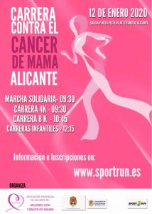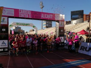 Más de 1.500 alicantinos han tomado la salida esta mañana en la tercera Carrera solidaria contra el Cáncer de Mama. La prueba, organizada por la concejalía de Deportes, junto con la Asociación Provincial de Alicante de Mujeres con Cáncer de Mama (APAMM) y Sport Run, ha tenido la salida y meta en la pista del Estadio Municipal de Atletismo Joaquín Villar de la ciudad de Alicante y se ha desarrollado por los viarios que recorren los alrededores del Monte Tossal, en un ambiente festivo y en el que ha imperado la solidaridad con la investigación el apoyo a la entidad que presta soporte a las mujeres afectadas por la enfermedad con el ingreso de las cuotas de inscripción. El teniente de alcalde, Manuel Villar ha dado la salida a la primera de las pruebas junto a la presidenta de la Asociación, Loreto Brotons, en una carrera que ha contado con distintos miembros de la Corporación Municipal.