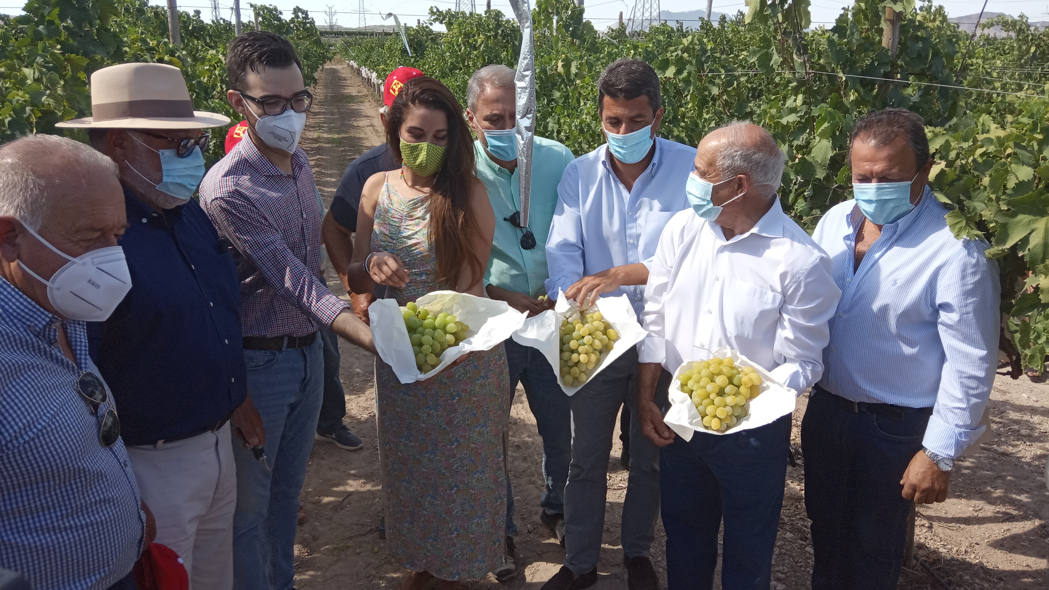 El presidente de la Diputación de Alicante, Carlos Mazón, ha participado esta mañana en el corte del primer racimo de la Uva de Mesa Embolsada del Vinalopó con el que se da por iniciada la campaña de recolección de este fruto de la vid, cuya producción este año arroja un registro de unos 40 millones de kilos. Durante el acto, el presidente ha ratificado el compromiso de la institución provincial con el sector y con el manifiesto de la ‘Mesa de Crisis Sectorial de la Uva de Mesa del Medio Vinalopó’ suscrito por el colectivo en enero de 2020 y cuyo desarrollo ha paralizado la actual emergencia sanitaria derivada de la COVID-19.