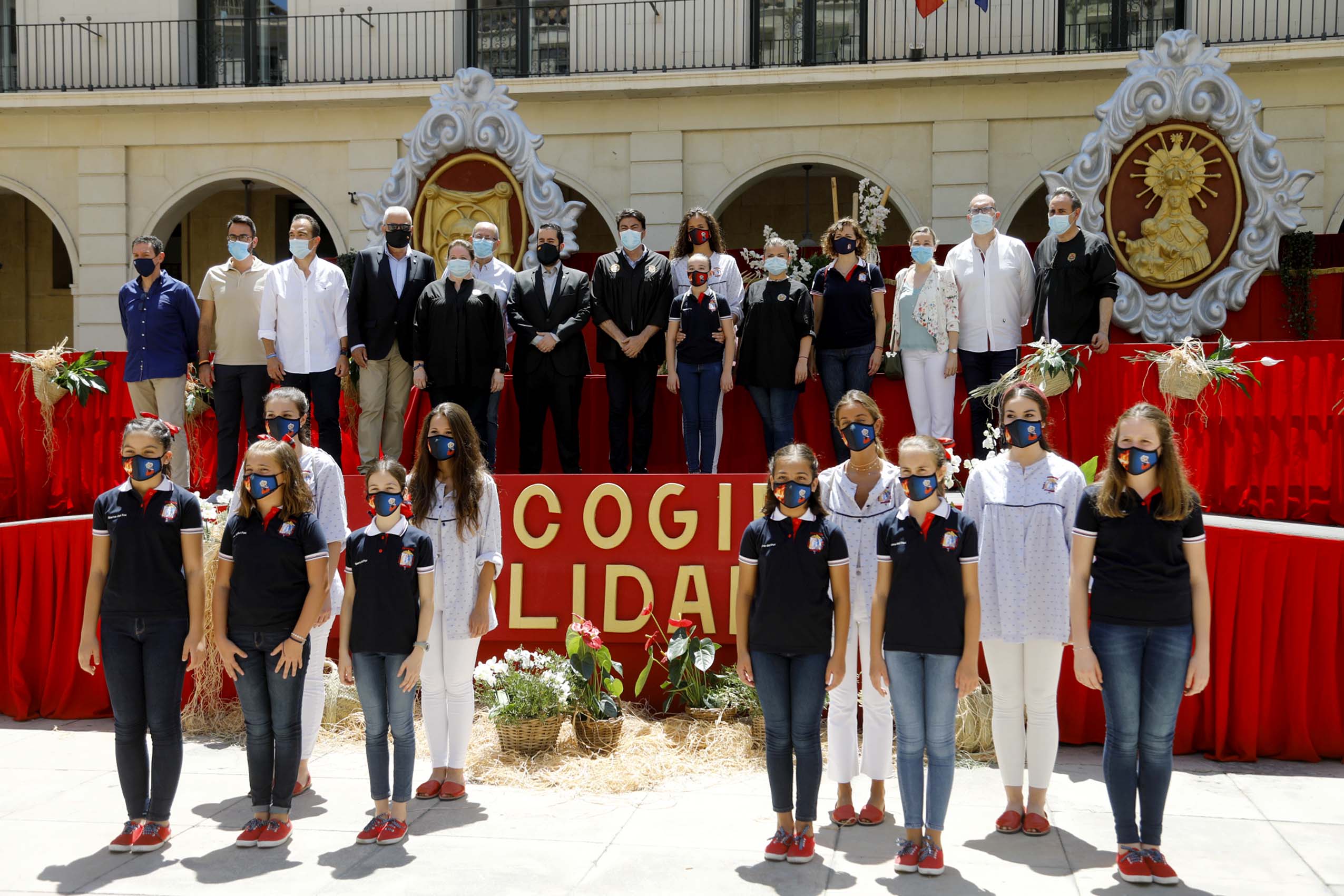 Las comisiones de hogueras y barracas y los integrantes del Gremio de Artistas de Hogueras han sido los primeros en acudir al escenario situado en la Plaza del Ayuntamiento, en el que destacaban sendos medallones alusivos a la Santa Faz y a la Virgen del Remedio. La ornamentación floral del escenario ha sido realizada, de manera gratuita, por la Asociación de Floristerías de Alicante. Poco después del mediodía ha sido el turno del Equipo de Gobierno, al que se ha sumado VOX, junto con la Federación de Hogueras encabezada por la presidenta Toñi Martín-Zarco y las Belleas del Foc, Isabel Bartual y Noelia Vinal. Han continuado los integrantes de la Federación de Asociaciones Festivas en Barrios y Partidas de Alicante (FAFBA), presididas por Juan Antonio Javaloyes. La sesión matinal de la Ofrenda Solidaria la ha cerrado la Federación de Fiestas Tradicionales, que preside Óscar Llopis. Por la tarde ha comenzado la Ofrenda la Junta Mayor de Hermandades y Cofradías de Semana Santa, con Alfredo Llopis a la cabeza, y la Federación Alicantina de Moros y Cristianos, capitaneada por Emilio Carretón.