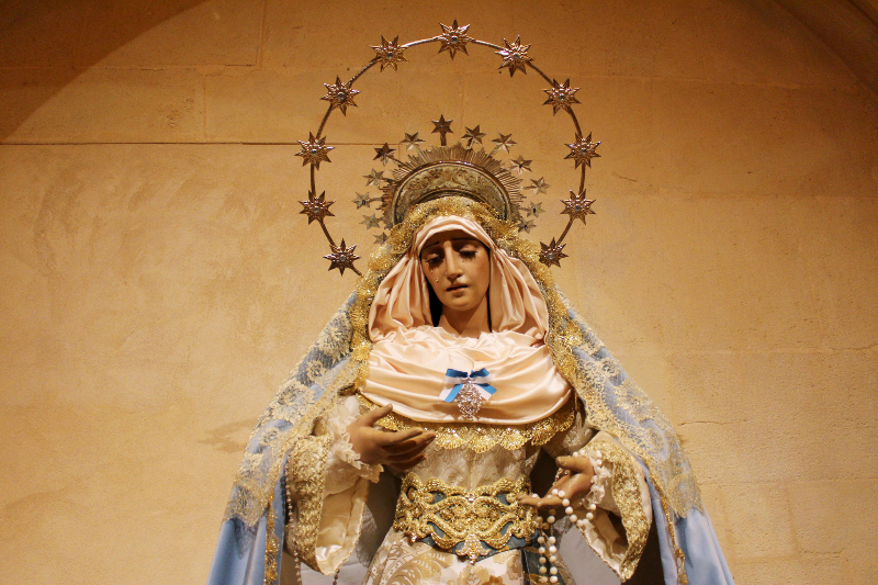 Les pido que sepan que hoy esta Mona de Pascua es símbolo de renacimiento, de concordia y de celebración. Y que, sobre todo, algunos, yo la primera, empiezo, con lo sumamente anticlerical que he sido, a querer defender que no estaría mal cuidar mis tradiciones sin perjuicio de adoptar las que mejor sumen de otros a las mías de paso… pero sin renunciar a que mi Mediterráneo latino, romano, luego mezcla de moriscos, mozárabes, cristianos, ortodoxos, judíos y algún sajón o vándalo y alano suelto –los bárbaros también hicieron de las suyas “bajando al Moro…”– es mío, y quiero que siga siéndolo. Con todo lo que conlleve y con su gastronomía, sus colores, sus olores y sus puestas en escena. Quiero seguir celebrando, y pienso, la Navidad, Todos los Santos, las Hogueras, las Fallas, la Cuaresma, el Carnaval por supuestísimo…, y esta Semana tan bonita que huele a cirio, incienso, vela y mucha música solemne que recoge almas y las hace transitar durante un instante a otro planeta y otro momento, el de la vida misma, incluso en la calle de enfrente de toda la vida. Por un instante, entre esos cientos de luces de las velas, perdidas por los mantos de la Virgen, entre la caída de sus manos recogiendo a Jesús, siento que hay cosas que siguen mereciendo la pena, cosas inexplicables, alquimias de los sueños y la Historia que no quiero perder.