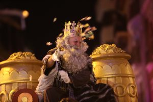 Los Reyes Magos desfilarán en la parte final del bloque Bíblico. Cada uno de los Magos de Oriente dispondrá de dos carrozas. En la principal se situará el Rey y una secundaria para porteo de regalos, caramelos y personas.
