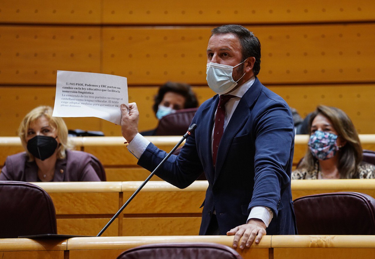 Además, el portavoz popular ha criticado que se elimine el castellano como lengua vehicular, tras lo cual ha lamentado que “usted y el señor Sánchez sean prisioneros de formaciones políticas que vienen a destruir el Estado y que atentan directamente contra todo lo que nos une, con tal de preservar su sillón”. “Han eliminado los porcentajes con respecto a las enseñanzas mínimas establecidas en un 75% para el conjunto de las regiones y el 65% para aquellas que tienen una lengua cooficial. ¿Por qué?, ha preguntado a la ministra de Educación.