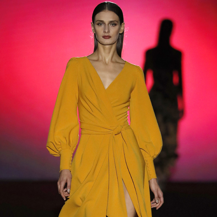 En el front row del alicantino más sólido de la costura junto a Juan Vidal, un fashion film ha inaugurado una buena colección, con reminiscencias de los setenta y un glamour puro de mujeres interraciales, muy urbanas pero sofisticadas, americanas e internacionales. En tejidos optical de colores y rayas, gasas y organzas, se desplegaban vestidos largos y con mucha magia. Entre azules eléctricos, malvas y combinaciones con toques amarillos, ocres o naranjas, alegrados por largos mostazas de crepé con cero brillo. Muy must de Yves Saint Laurent adaptados a mujeres milenial. Cortes limpios y bien trazados como siempre, algún corpiño para que la casa Laguna no olvide su origen, esta vez sobre pantalones pitillo y sobre camisolas bien ajustadas y cortadas a cuerpo, y luego toda la colección de alfombra roja. Siempre elegante la verdad, su despliegue de encajes, bordados y redes de entreluz y entrepieles, no deja a nadie indiferente. Y con él, se llega a anticipar lo que vendrá. La noche ha sido de Pertegaz, donde Jorge Vázquez ha vuelto a liarla parda. Su glamour impenitente, elegante, clásico con vuelta de tuerca, como el sabe, con su buen hacer del Norte, y esa manera de tocar, coser y entrelazar tejidos, texturas y patrones, ha dado el toque de campana para la nueva costura española en el Palacio Cibeles. En un evento con royals incluidas (recordemos que Letizia es su clienta más vip) y con el TODO MADRID a rebosar, actores, actrices, vips, señoras y señores de buen ver… y ahí, ahí estaba MARIAN RINCÓN DUQUE, la diseñadora alicantina de zapatos que es la OTRA ESTRELLA de PERTEGAZ. La nueva revelación con una colección increíble y esta vez acompañada en el evento del modelo y actor alicantino Alex Peral, que este finde desfilara en una bonita sorpresa y cuya carrera ya empieza a despuntar. Lo siguiente será esperar a Juan Vidal, que tiene el reto de superarse…uff que listón más alto le han puesto y el estreno del super star DOMINICO. Que de la mano de Clara Courel va a dar la “campanada”, por algo es uno de los diseñadores fetiche de Lady Gaga…. Alicante está que arde.