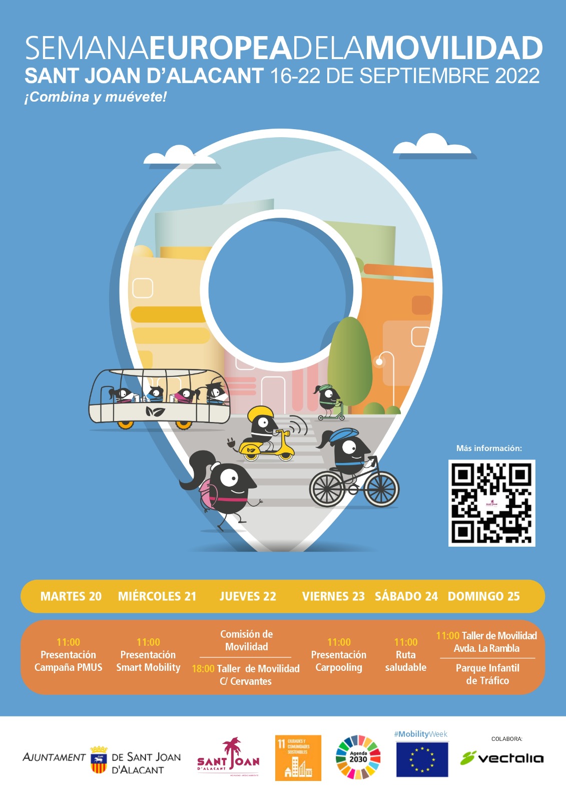 La Semana Europea de la Movilidad se celebrará en Sant Joan entre los días 20 y 25 de septiembre, entre las actividades que se ofrecen destaca la presentación de la campaña de comunicación del nuevo Plan de Movilidad Urbana Sostenible (PMUS), el cual se encuentra en tramitación en estos momentos y cuya finalización está muy próxima.
