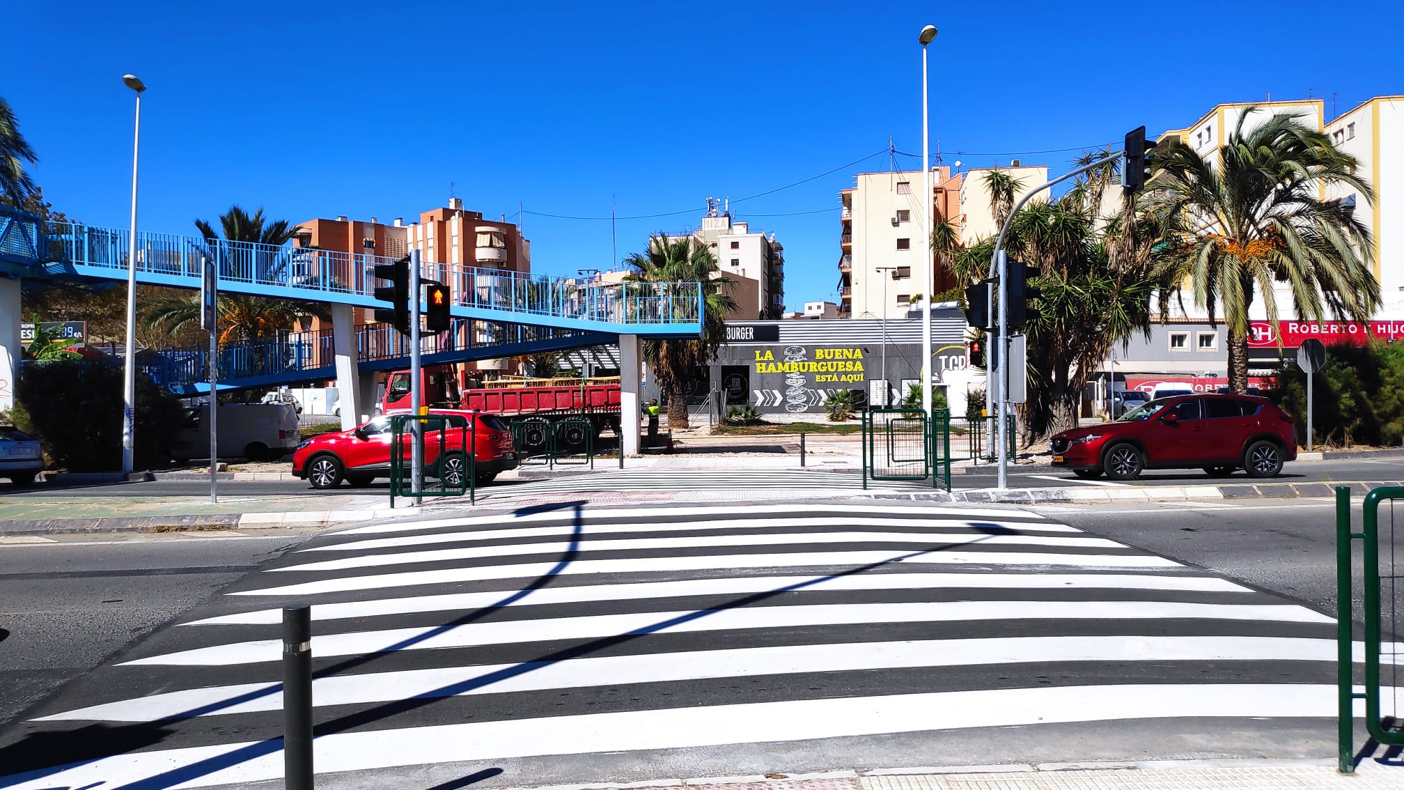 La concejalía de Urbanismo, dirigida por la edil socialista Eva Delgado, puso en funcionamiento un nuevo paso peatonal semaforizado en la Avenida Miguel Hernández en la mañana de ayer. Este nuevo paso estará situado a la altura de la zona de ocio de la vía de servicio. Las obras han sido ejecutadas por la empresa Mediterráneo de Obras y Asfaltos y tienen un coste de 70.000 €.