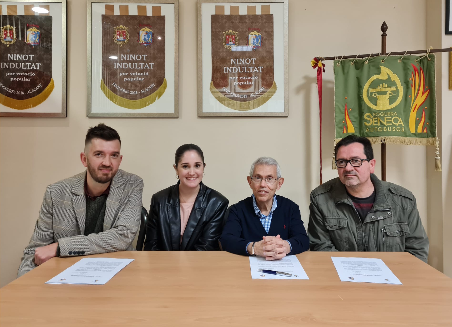 Durante la rúbrica, que da inicio a la construcción de la foguera, han estado presentes los artistas Gallego y Pérez junto al presidente de Séneca-Autobusos, Josep Amand Tomás, quien ha asegurado que plantarán una «gran foguera»; y su bellea, Patricia Medina Cerezo.