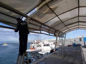 El Patronato Municipal de Turismo que preside la concejala popular Mari Carmen De España está renovando la estructura con toldo del muelle portuario de la isla de Tabarca. Se trata de una instalación con sombra que da la bienvenida a la isla en el mismo muelle al que llegan los barcos y que presentaba un importante deterioro como consecuencia del largo periodo sin ser objeto de ninguna actuación de mantenimiento.