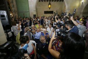 Luis Barcala, alcalde de Alicante, ha felicitado junto con el concejal de Fiestas, Manuel Jiménez, a Toñi Martín-Zarco Marín, nueva presidenta de la Federación de Hogueras. Martín-Zarco ha sumado 127 votos frente a los 98 de David Olivares. Además, ha habido tres votos nulos. La jornada electoral se ha desarrollado en el zaguán del Ayuntamiento de Alicante.