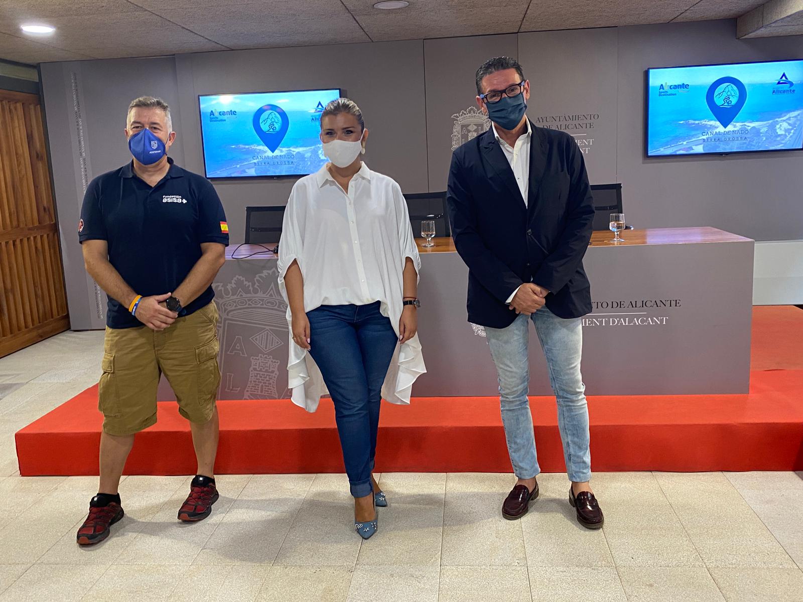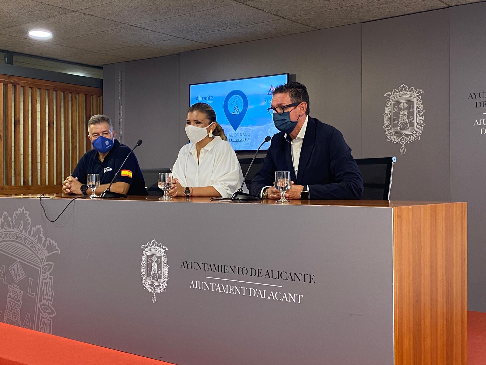La vicealcaldesa de Alicante y concejal de Turismo, Mari Carmen Sánchez, junto con el concejal de Deportes, José Luis Berenguer, han presentado esta mañana en rueda de prensa el canal de nado permanente de Alicante «Serra Grossa», catalogado como el de más longitud de España. A la presentación también ha acudido el nadador alicantino de fondo, Jorge Crivillés.