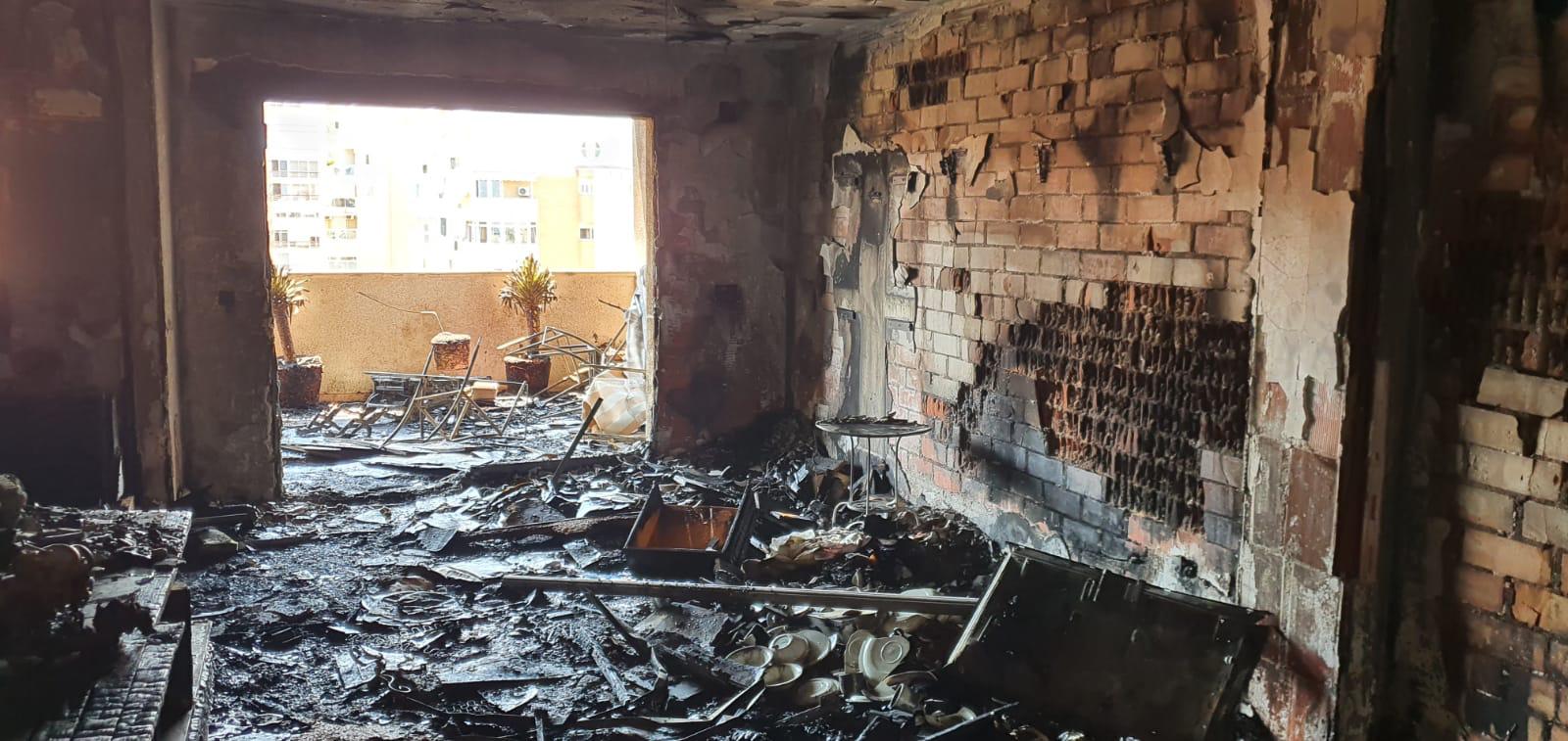 El fuego presentaba mucha carga térmica. La vivienda ha quedado parcialmente afectada y el salón totalmente calcinado