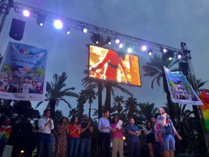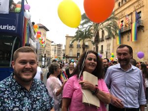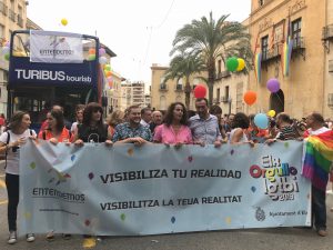 Un millar de personas han participado en el primer desfile del colectivo LGTBI en conmemoración de su día mundial. Entre los asistentes han estado el alcalde, Carlos González, el concejal de Igualdad, Mariano Valera, y varios miembros del Equipo de Gobierno y de la Corporación Municipal. La madrina del acto ha sido la actriz, activista y trans Carla Antonelli, quien ha sido la encargada de dar inicio a la fiesta con un emotivo y reivindicativo manifiesto. El desfile ha recorrido el centro de la ciudad, desde el Ayuntamiento hasta Traspalacio para llegar al Host de Baix, lugar donde Carla Antonelli ha leído un manifiesto por la visibilidad de este colectivo y en el que se ha podido disfrutar de diferentes actuaciones y una serie de actividades en las que el público ha participado. La actriz ha expresado su gratitud con la ciudad de Elche por tener, por fin, su Orgullo LGTBIQ «digno, diverso, respetuoso, y social». Además, ha pedido que el año que viene las calles se llenen para apoyar esta causa “porque la colaboración hace la fuerza”.