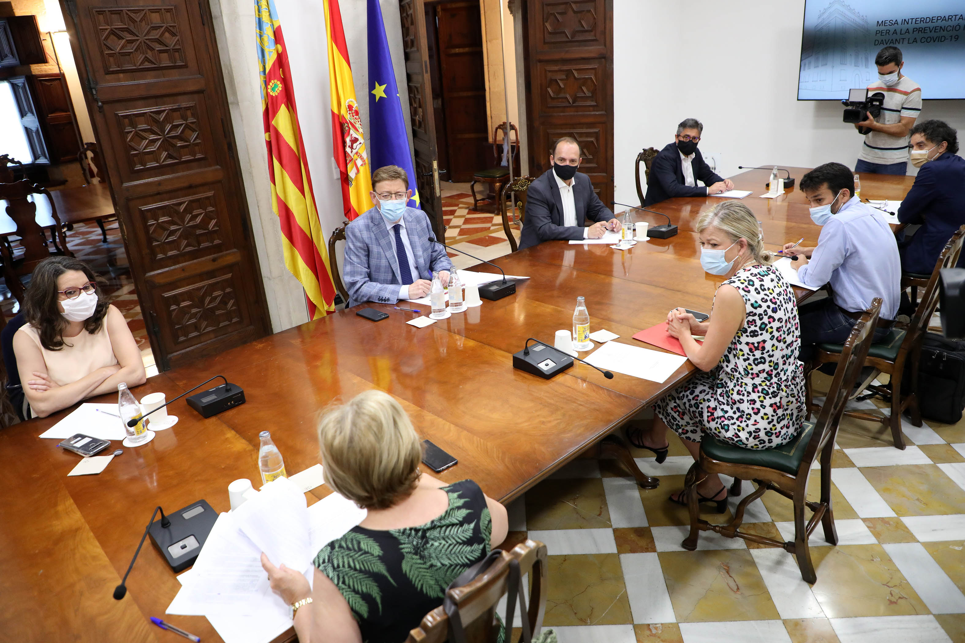 En la Mesa Interdepartamental han participado la vicepresidenta y Consellera de Igualdad y Políticas Inclusivas, Mónica Oltra; el vicepresidente segundo y conseller de Vivienda y Arquitectura Bioclimática, Rubén Martínez Dalmau; la consellera de Justicia, Interior y Administración Pública, Gabriela Bravo; el conseller de Educación, Cultura y Deporte, Vicent Marzà; la consellera de Sanidad Universal y Salud Pública, Ana Barceló; el conseller de Economía Sostenible, Sectores Productivos, Comercio y Trabajo, Rafa Climent, y el conseller de Política Territorial, Obras Públicas y Movilidad, Arcadi España.